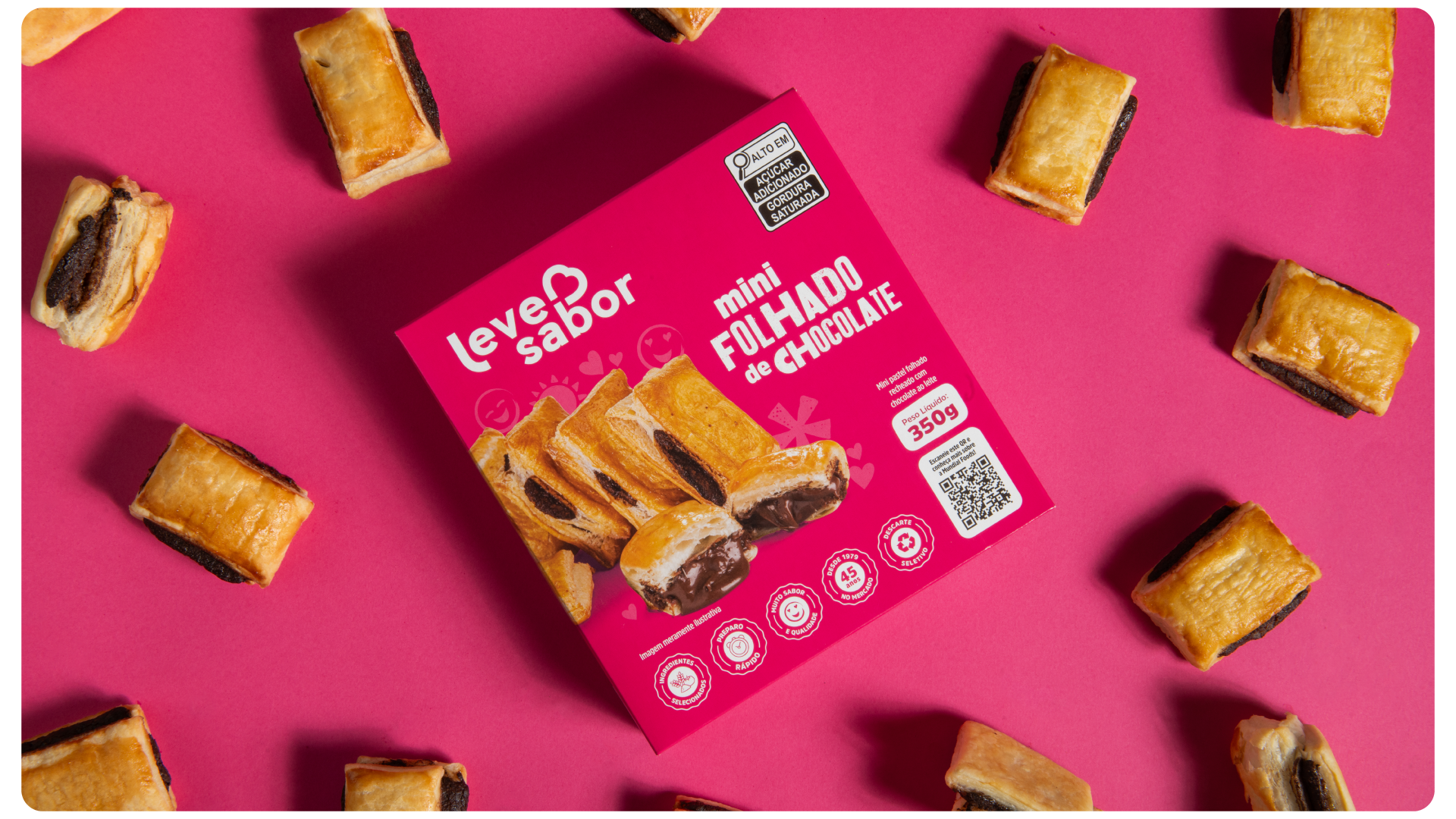O projeto foi pensado visando fortalecer a presença da marca e destacar a embalagem na gôndola do super-mercado, através do rosa, que retorna como cor primária da Leve Sabor depois de mais de 10 anos. Optamos pela diferenciação com a concorrência, apostando em uma linguagem enérgica e lúdica aliada ao tom de cor marcante e forte. Fica também o destaque para a tipografia personalizada que dá nome aos produtos da linha.