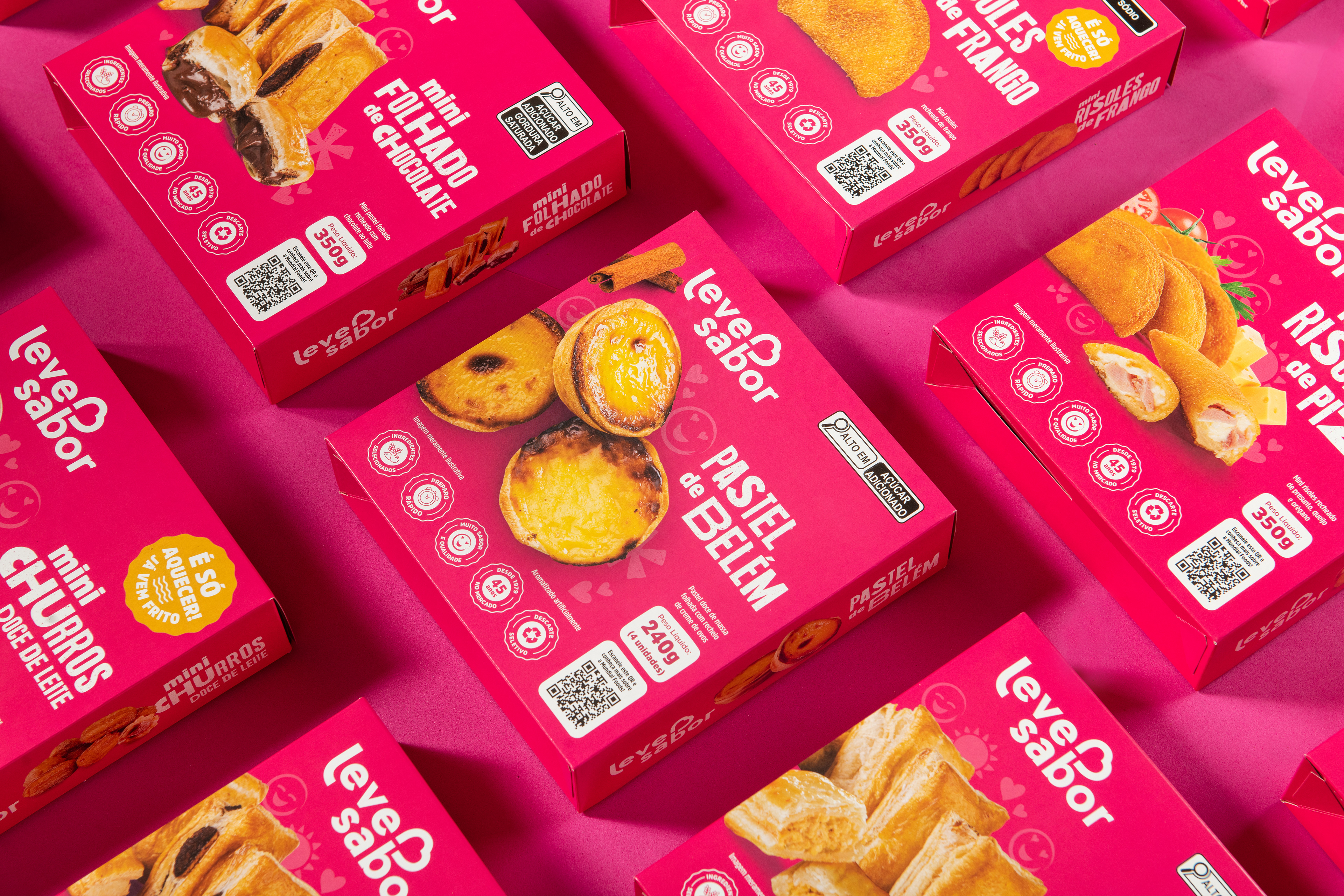 Leve Sabor is a traditional frozen food brand from Caxias do Sul [RS - Brazil], with over 45 years of experience in the market. It has a strong regional presence, supplying quality food products to business across various sectors. In early 2025, together with the brand’s marketing team, I developed the new visual identity for the packaging of the self-service line, which offers smaller portion snacks with quick and practical preparation.