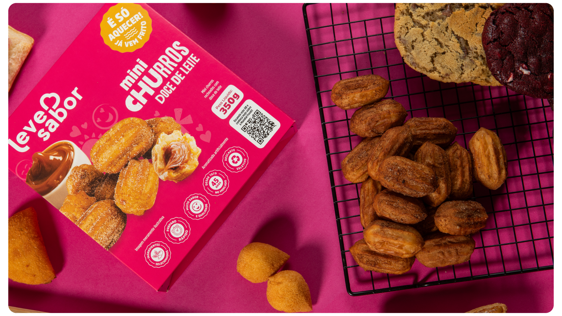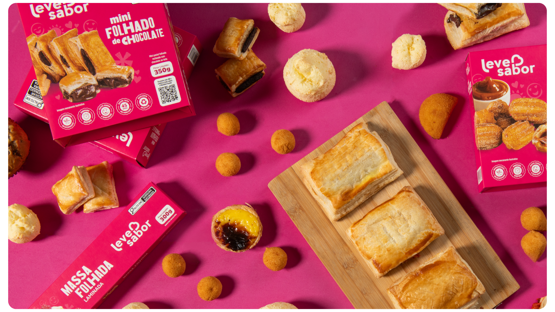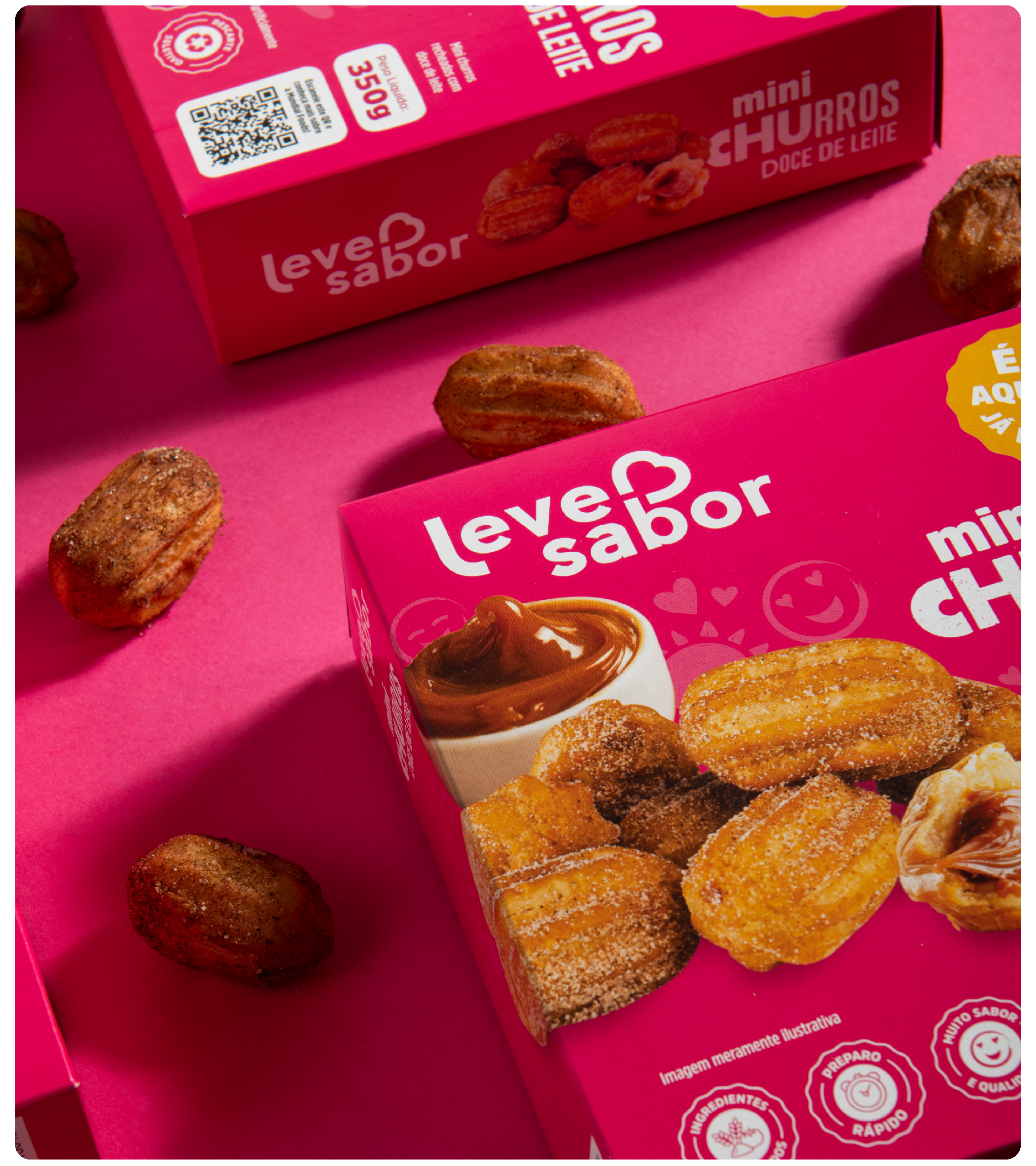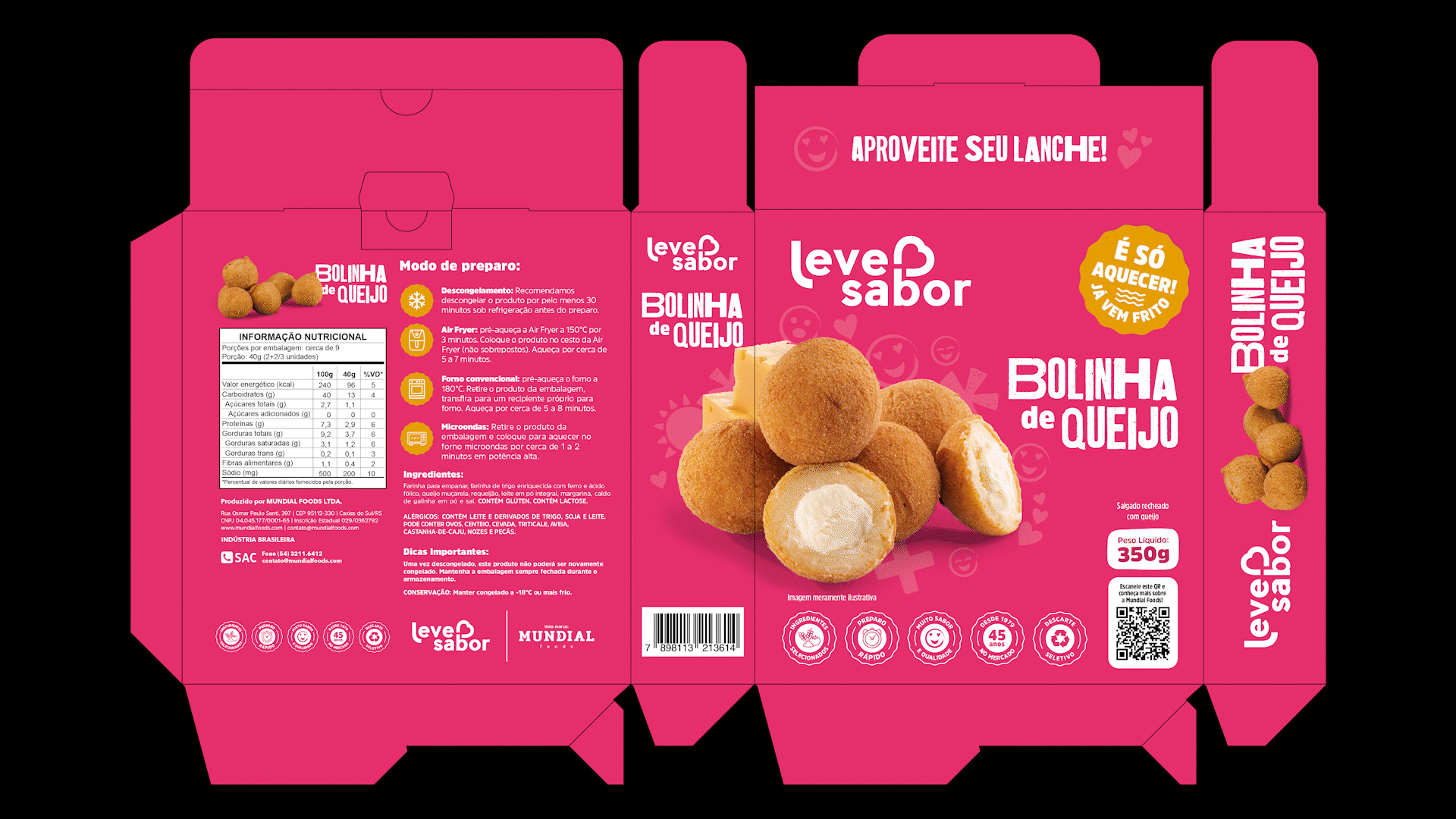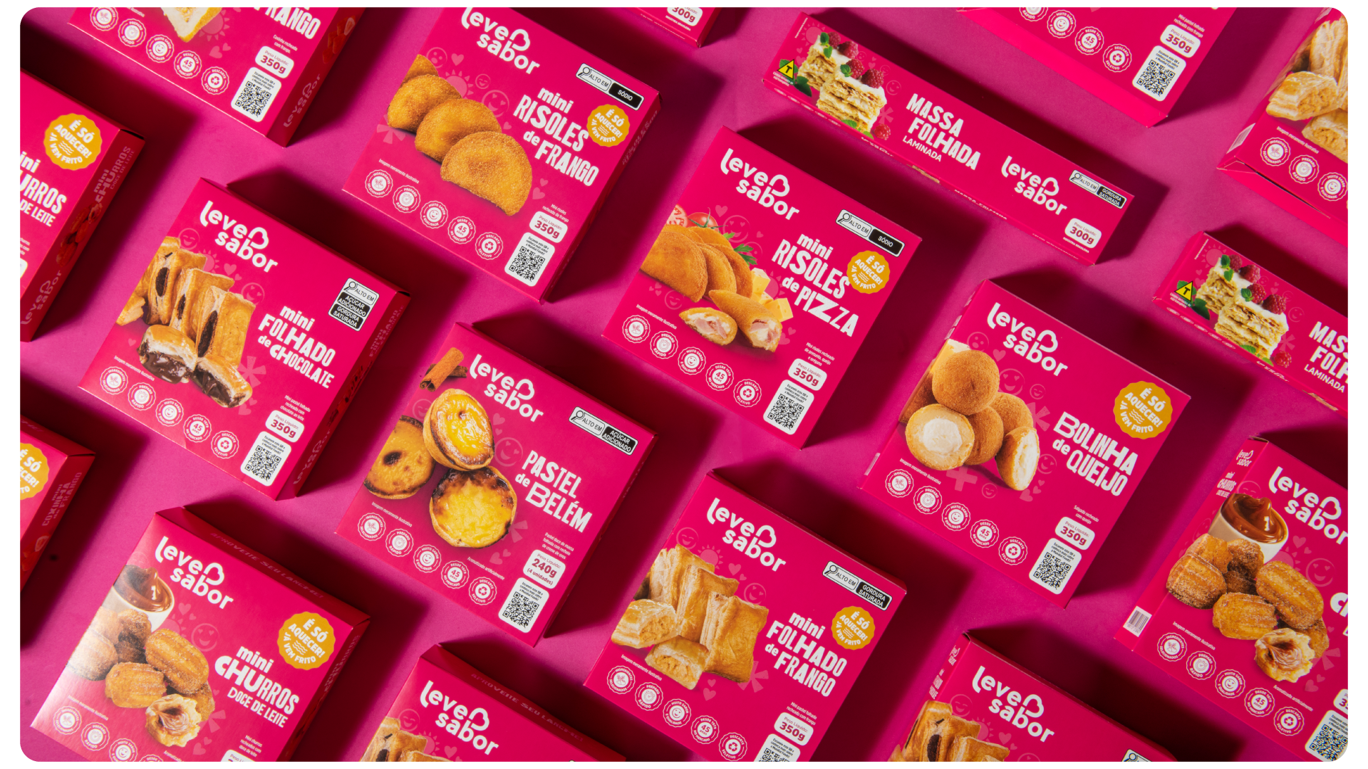 A Leve Sabor é uma tradicional marca Caxiense de alimentos congelados, com mais de 45 anos e experiência no mercado. Tem grande atuação regional fornecendo produtos alimentícios de qualidade para negócios atuantes em diversos ramos. No começo de 2025, junto da equipe de marketing da marca, desenvolvi a nova identidade visual para as embalagens da linha autosserviço, a qual entrega lanches em porções menores com preparo rápido e prático.